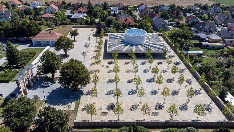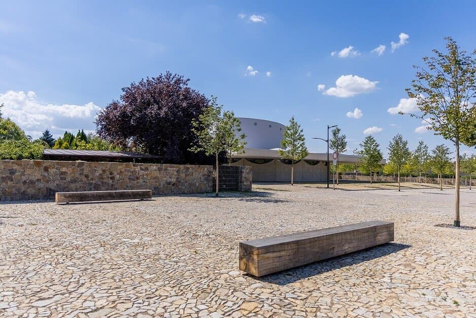 Žulová dlažba představuje dlouhodobé a udržitelné řešení. Odolává intenzivnímu provozu, klimatickým vlivům i času samotnému. Přilehlé výsadby a kamenné plochy společně vytvářejí klidné místo pro setkávání, odpočinek i rozjímání – prostor, který bude sloužit generacím.